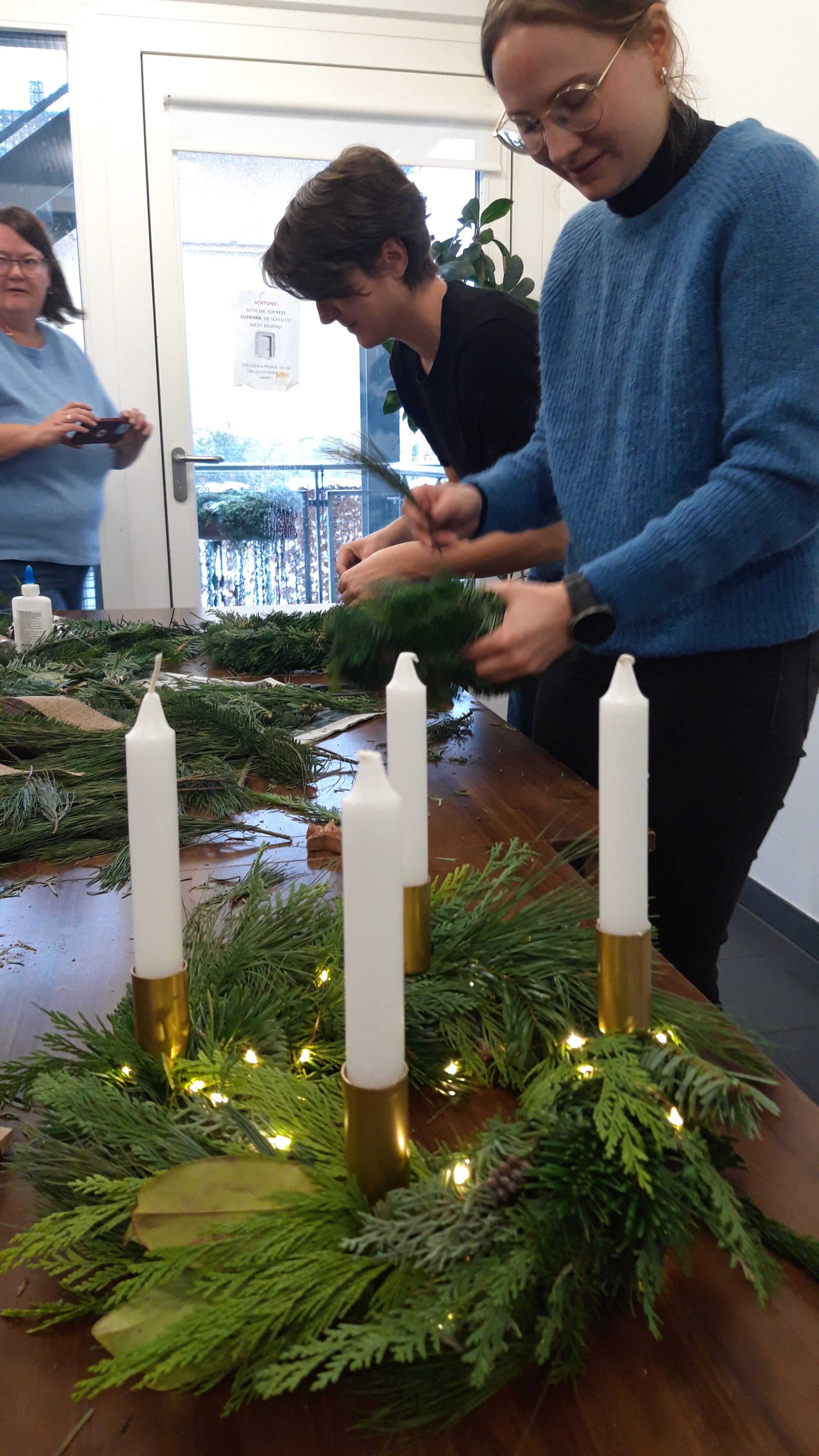 Draht und Rat bieten wir. Bitte Tannengrün, Strohrohling oder Zeitung, Deko, Kerzen mitbringen. Wir freuen uns auf Dich!