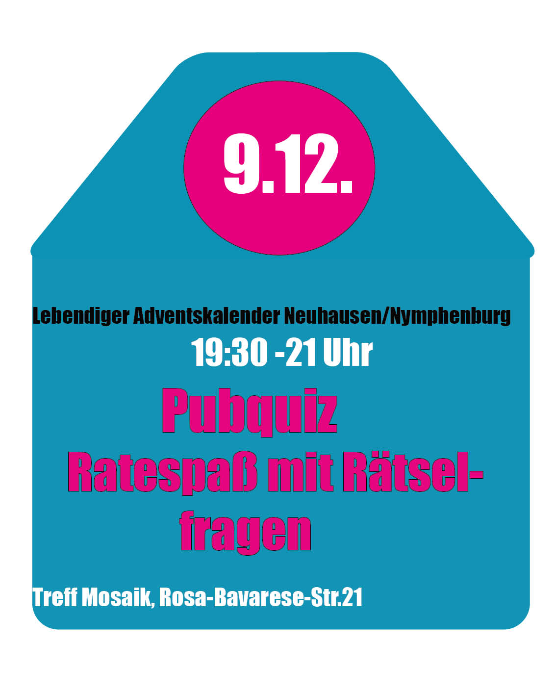 Am Dienstag,9.Dezember kannst Du ab19:30h im Treff Mosaik (2.Stock) ein witziges PubQuiz erleben.