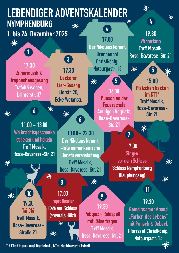 Der lebendige Adventskalender ist wieder da! 25. November 2025 Hier der Überblick aller Aktionen in Neuhausen-Nymphenburg: Lebendiger Adventskalender 2025 zum download Kommentar absenden Antwort abbrechenDeine E-Mail-Adresse wird nicht veröffentlicht. Erforderliche Felder sind mit * markiertKommentar * Name * E-Mail * Website Meinen Namen, meine E-Mail-Adresse und meine Website in diesem Browser für die nächste Kommentierung speichern. Δ Diese Website verwendet Akismet, um Spam zu reduzieren. Erfahre, wie deine Kommentardaten verarbeitet werden.